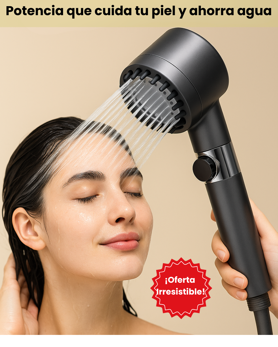 Este cabezal presurizado mejora el flujo para darte una ducha potente, mientras ayuda a usar menos agua y reducir impurezas que tocan tu piel y cabello.